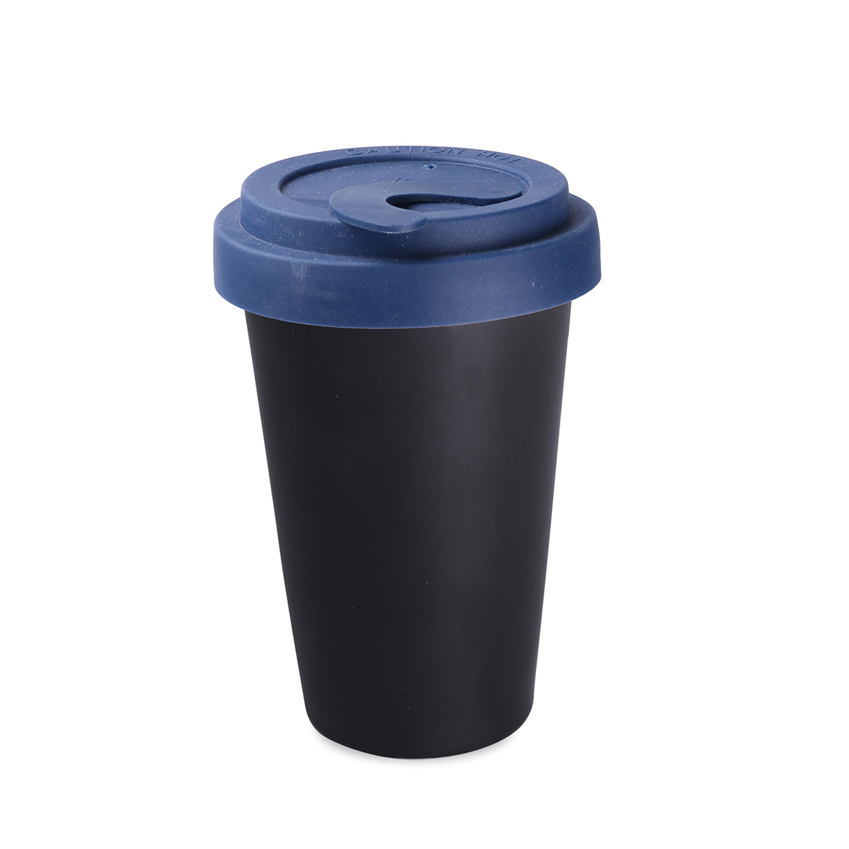 Porcelain promotional mug with a polymer lid that protects against accidental beverage spills – Lock stopper version. Designed for active people and travel enthusiasts. Thanks to its rare internal structure with double porcelain walls, this mug features an enhanced level of thermal insulation. The mug body is available in white and satin black. The lid is available in the following colors: white, orange 021C, Cool Gray 7, navy blue 294C, brown 4695C, black, pink 4064C, blue 2144C, eucalyptus 5493C, desert sand 2310C.