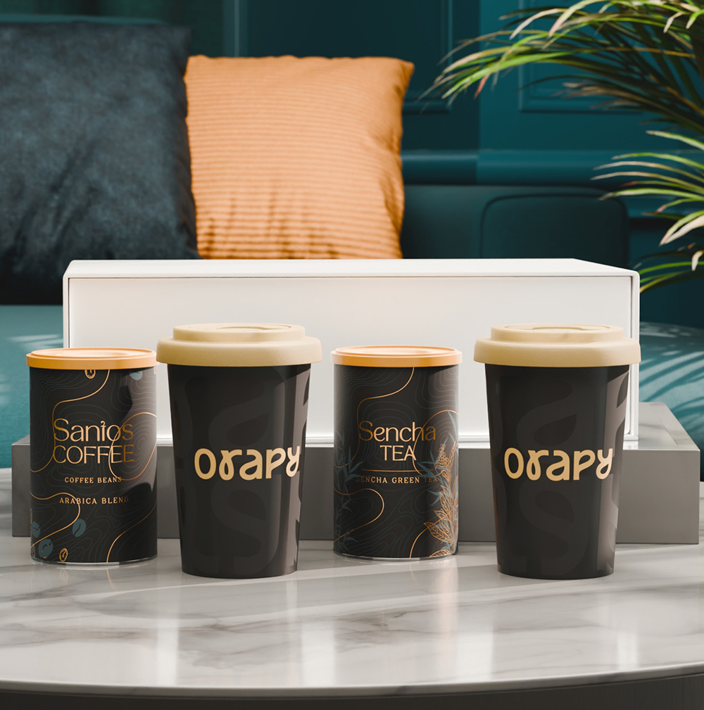 The set with Freedom mobile mugs combines mobility with subtle branding. Inside, it also includes selected “Santos Coffee” and “Sencha Tea” presented in elegant tins. The entire set is packaged in an exclusive, snow-white box with a magnetic closure. The lid is available in the following colors: white, orange 021C, Cool Gray 7, red 200C, navy blue 294C, brown 4695C, black, pink 4064C, blue 2144C, eucalyptus 5493C, desert sand 2310C.